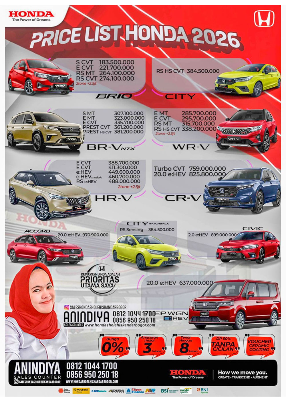 Berikut ini daftar harga OTR mobil Honda di wilayah Bogor dan sekitarnya